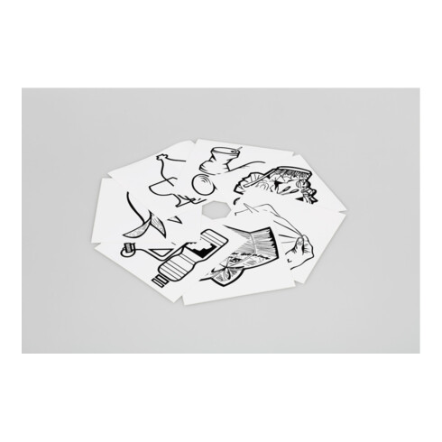 inkl. MwSt.VAR Piktogramm-Aufklebersatz 7-fach schwarz/weiß (Wertstoffe Papier+Restmüll+Glas+Metall+Biomüll+Putztücher)