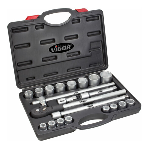 VIGOR Innenvierkant Antrieb 20 = 3/4 Zoll Steckschlüssel-Satz V2318 Vierkant hohl 20 mm (3/4 Zoll) Außen-Sechskant Profil - Anzahl Werkzeuge: 21