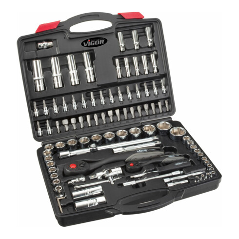 VIGOR Steckschlüssel-Satz V1706 Vierkant hohl 6,3 mm (1/4 Zoll), Vierkant hohl 12,5 mm (1/2 Zoll) Außen-Sechskant Profil, Innen TORX Profil, Kreuzschlitz Profil PH, Schlitz Profil, Pozidriv Profil PZ, Innen-Sec